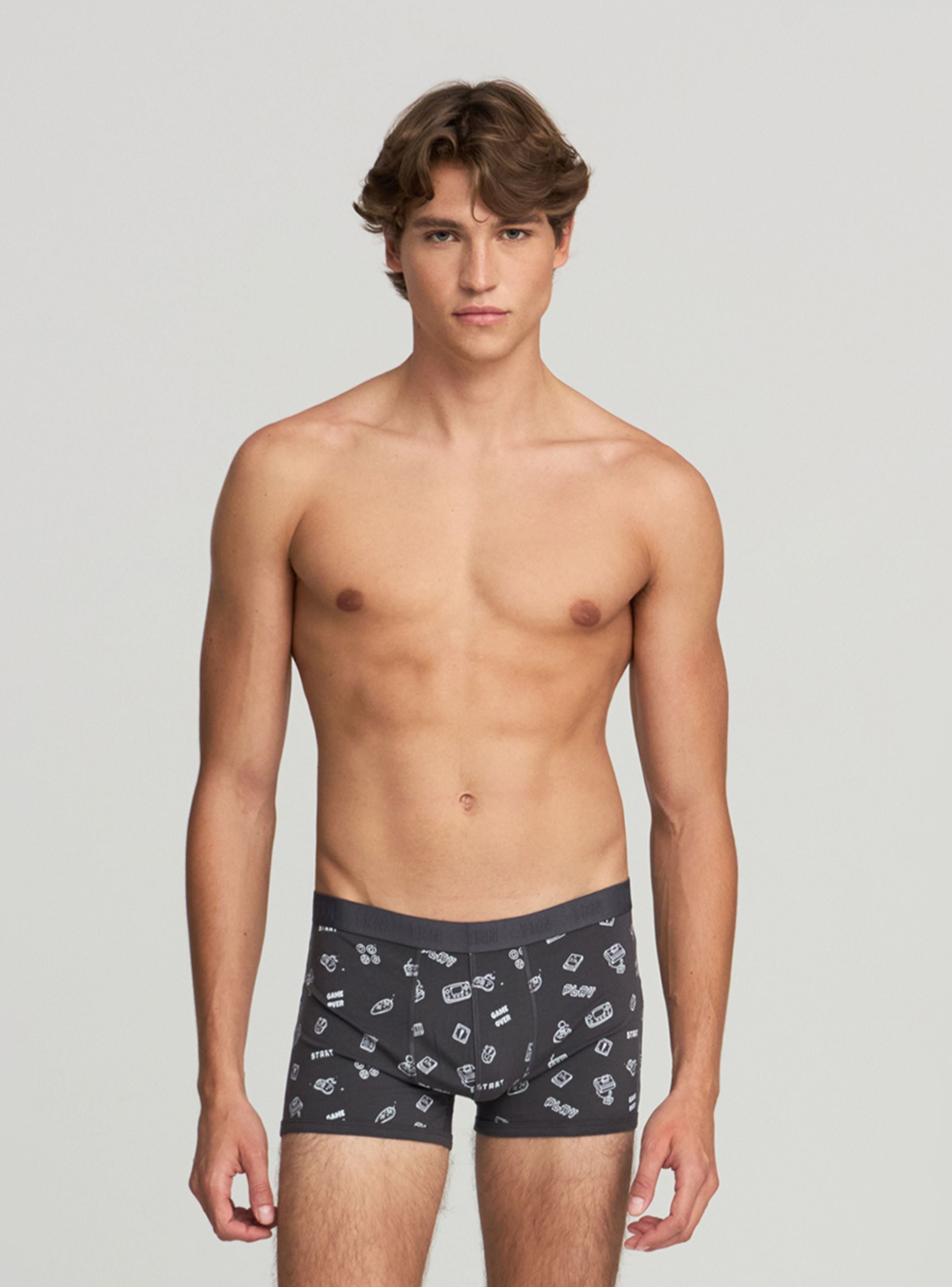 Muške bokserice sa dizajnom boksera, karakterisane živopisnim i modernim printom sa motivima inspirisanim svetom video igara. Idealne za ležeran i udoban izgled, ove gaćice nude prianjajući kroj i elastični pojas za optimalnu podršku. Savršene za svakodnevnu upotrebu, ističu se svojim jedinstvenim stilom i praktičnošću.