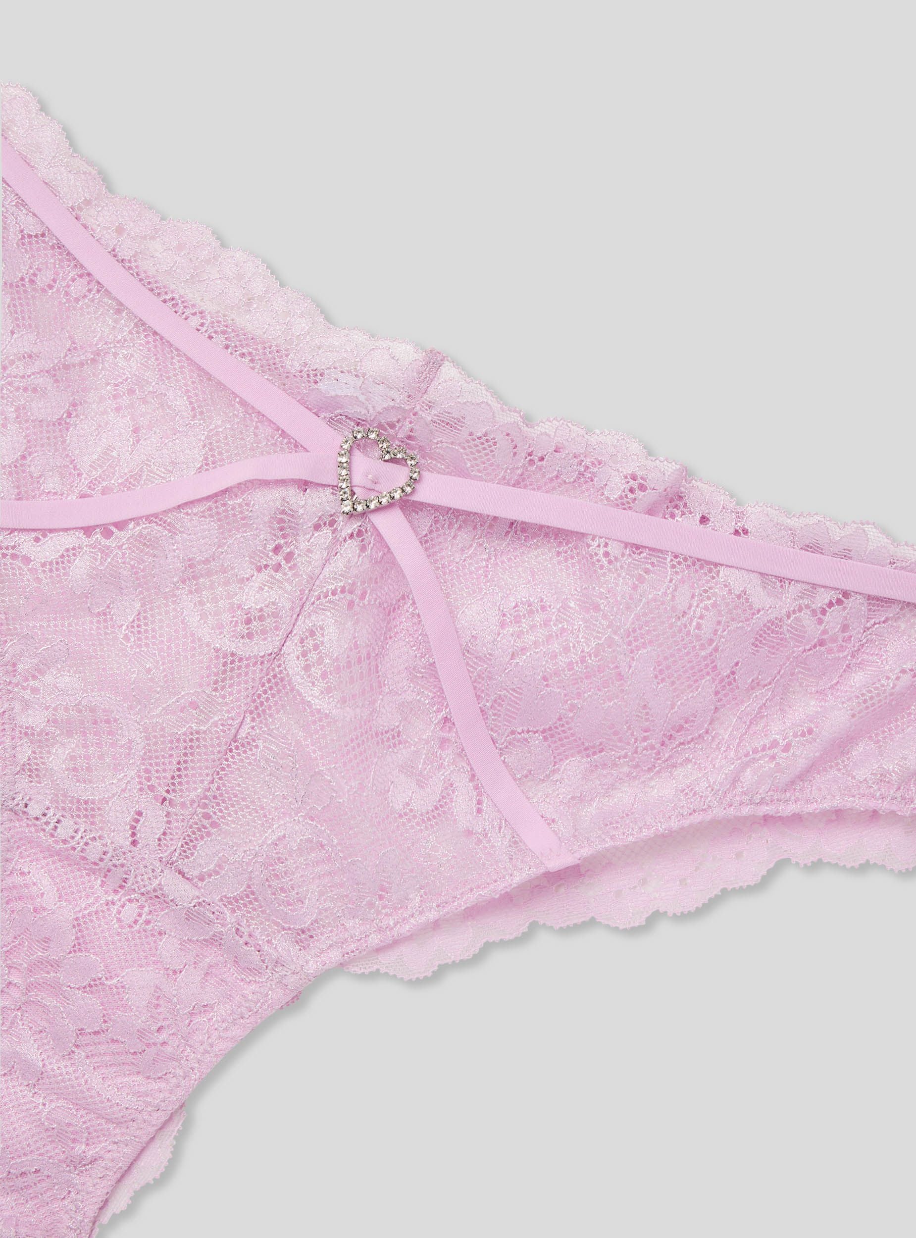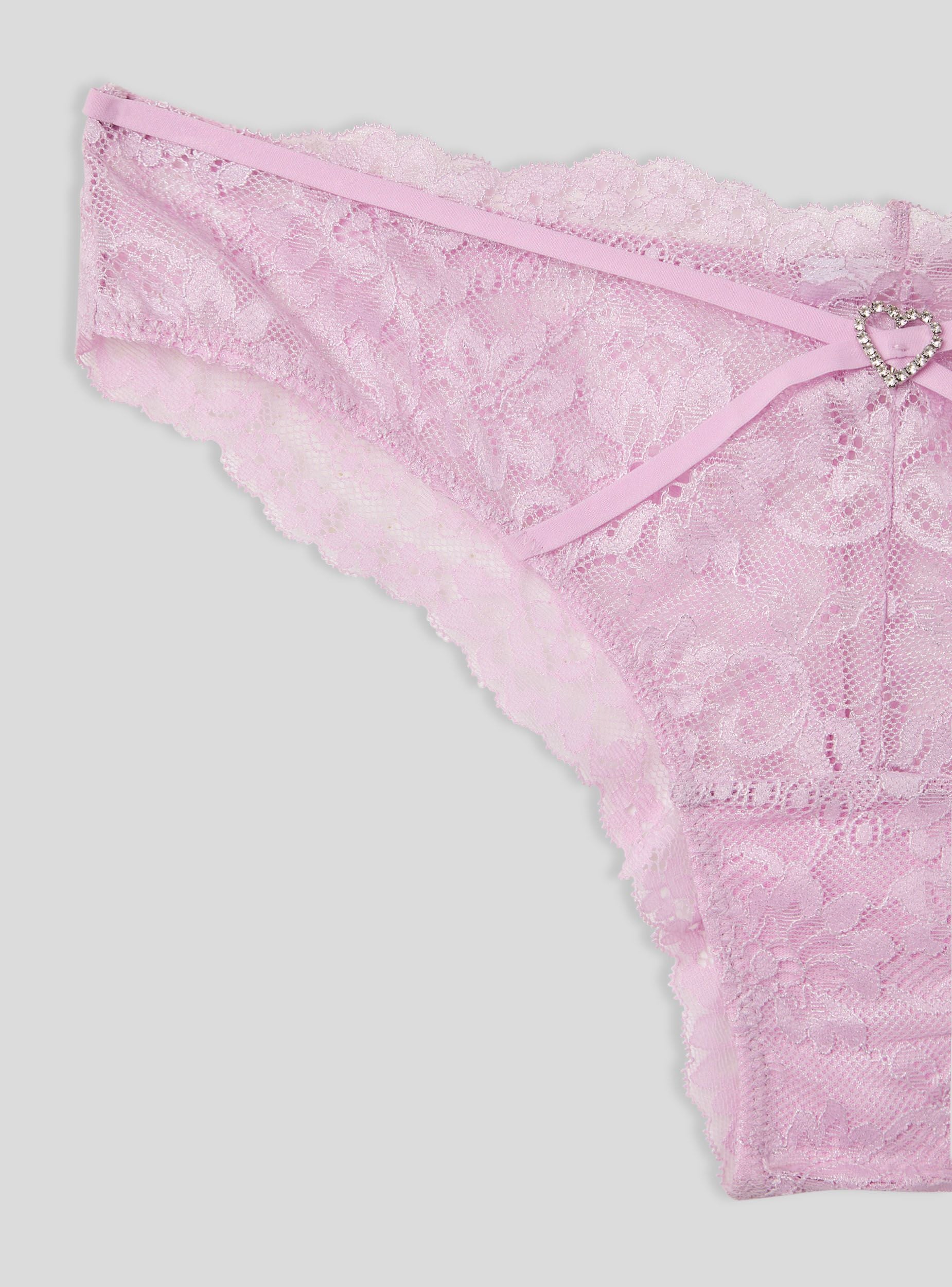 Slip da donna modello brasiliana con design tinta unita, caratterizzato da dettagli in pizzo che conferiscono un tocco di eleganza. Il capo presenta un dettaglio di un cuoricino posizionato in modo strategico per aggiungere un accento decorativo raffinato. Lo slip è pensato per essere comodo e sensuale, ideale per essere indossato tutti i giorni o in occasioni speciali, abbinando praticità e femminilità in un unico capo.