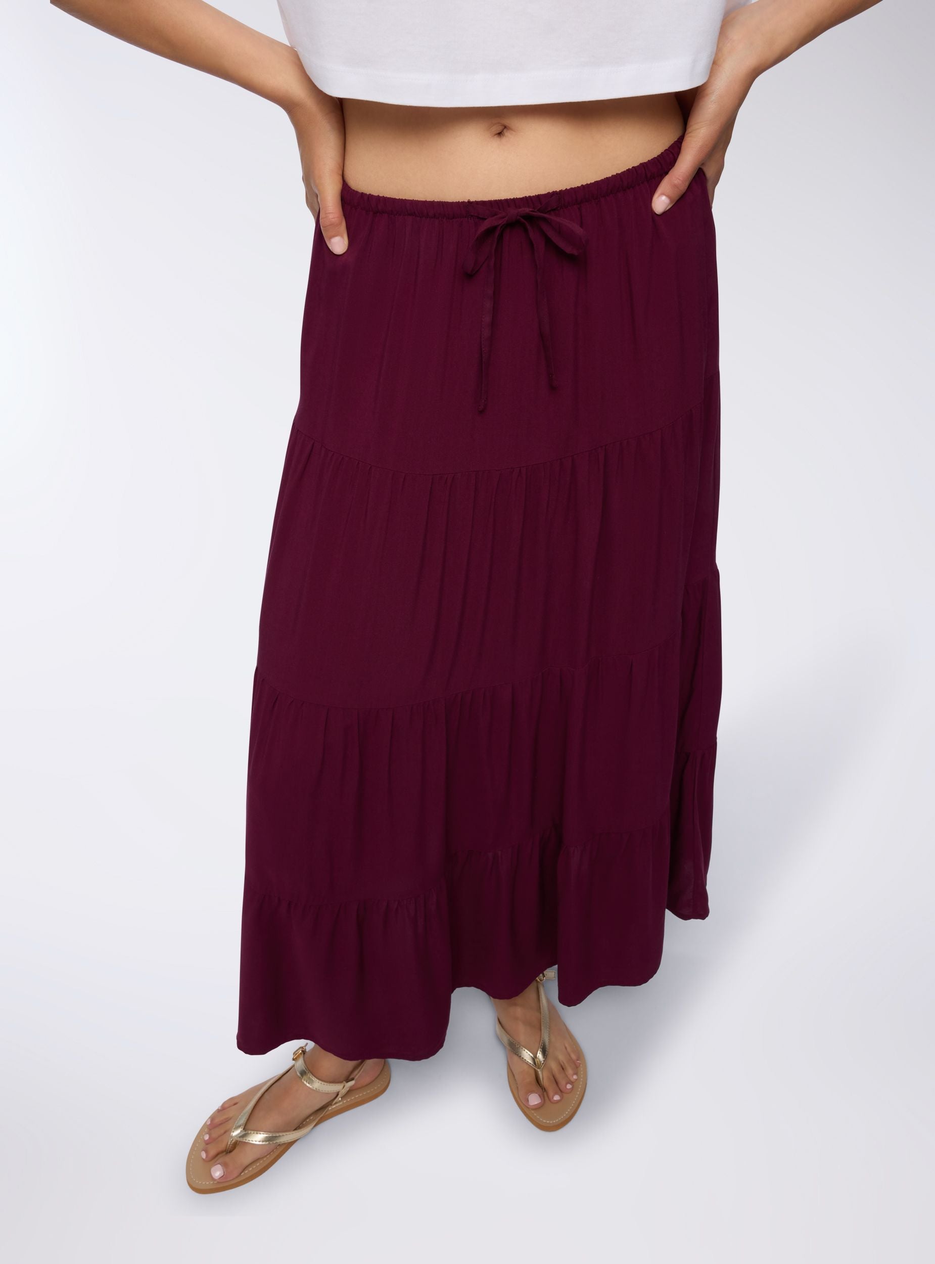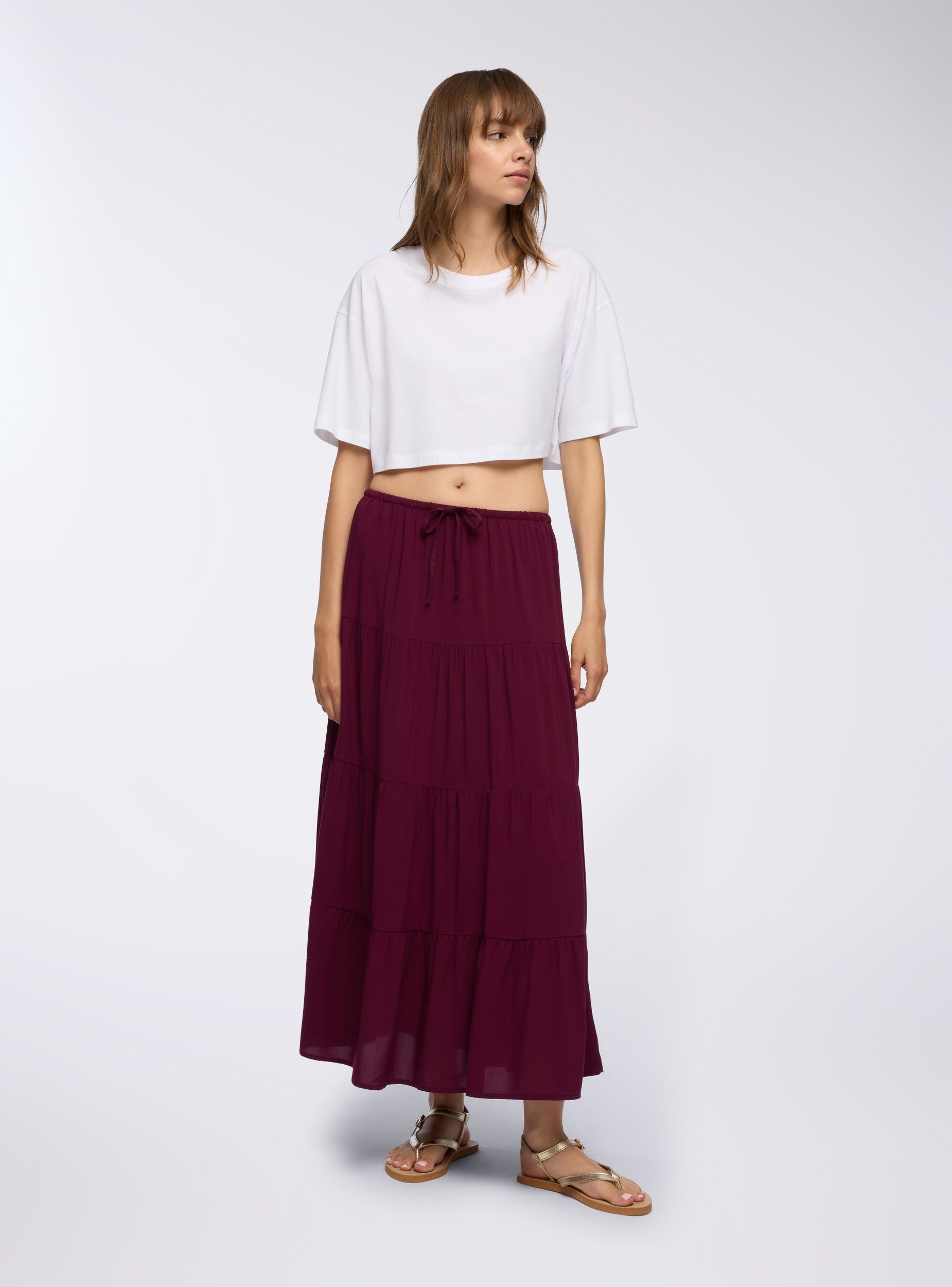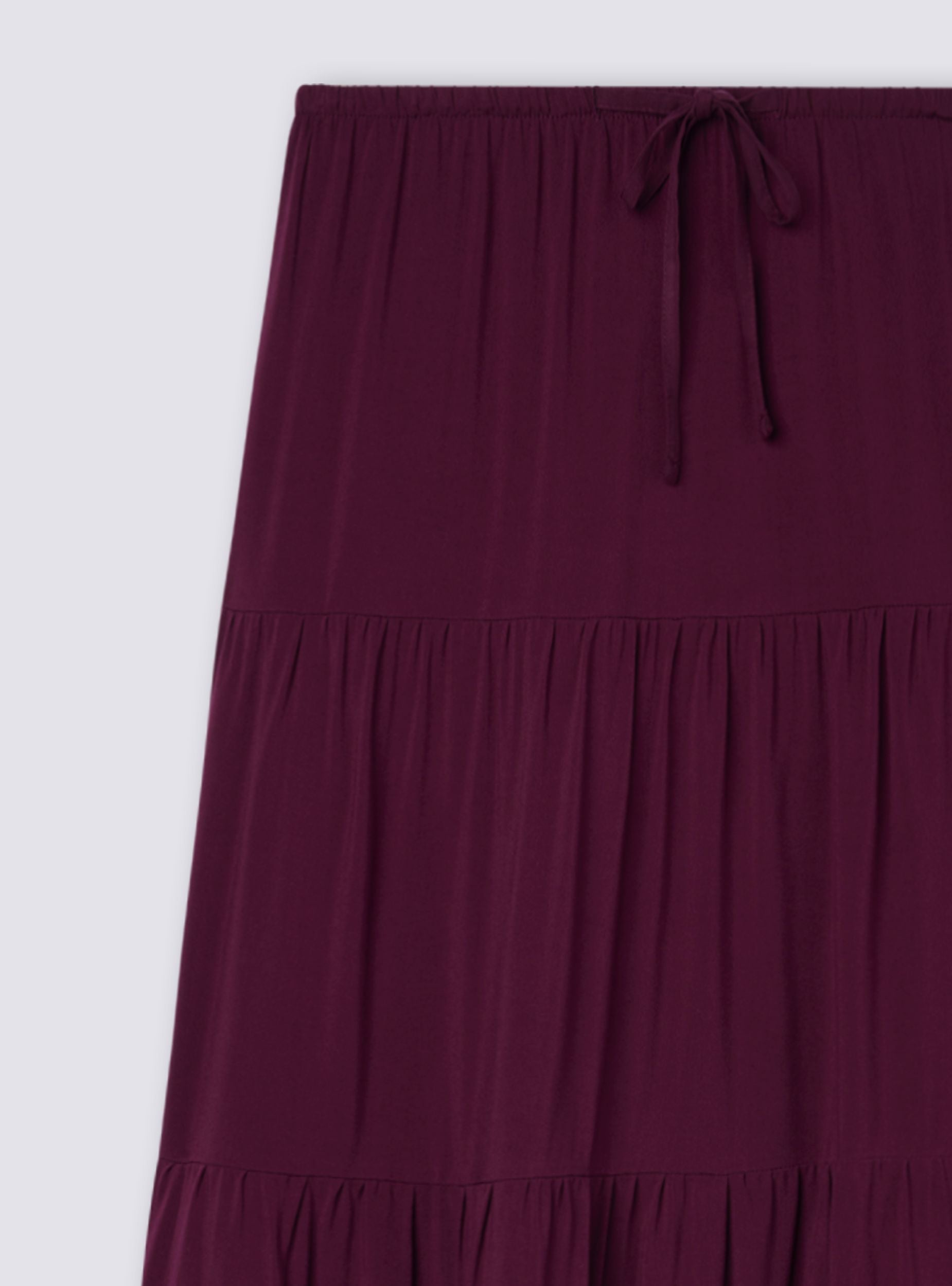 Duga ženska suknja u jednobojnoj varijanti sa volanima, idealna za ležeran i svestran izgled. Elastični pojas sa pertlama obezbeđuje udobno i podesivo pristajanje. Savršena za kombinovanje sa majicama ili košuljama, pogodna za razne prilike, od slobodnog vremena do neformalnih događaja. Dizajn sa volanima dodaje pokret i stil odevnom predmetu, čineći ga nezaobilaznim komadom u garderoberu.