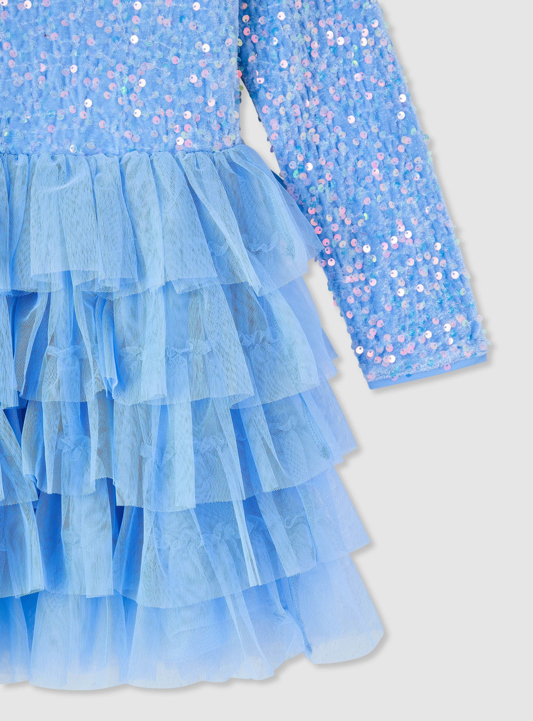 Haljina sa šljokicama i suknjom od tila sa volanima