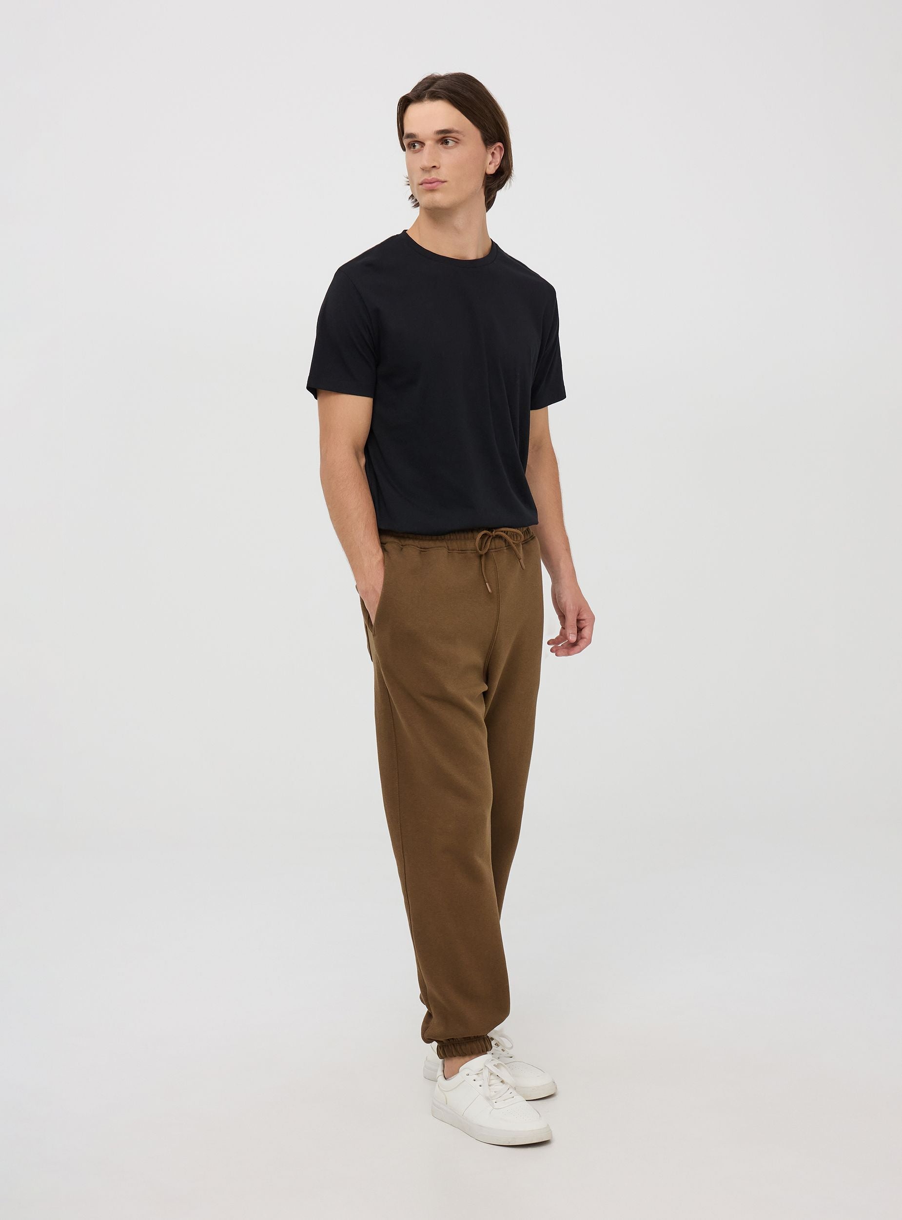 Muški jogger pantaloni karakterišu suštinski i svestran dizajn, sa elastičnim pojasom koji se može podešavati pomoću vezice. Napravljeni su od lagane, mekane i prozračne tkanine, garantuju udobnost i slobodu kretanja. Opremljeni su bočnim džepovima i jednim zadnjim džepom. Donji deo nogavica sa manžetnom za sportski i ležeran izgled. Osnovni komad koji je neophodan imati u ormaru, savršen za sportske aktivnosti, trenutke opuštanja ili neformalne izlaze.