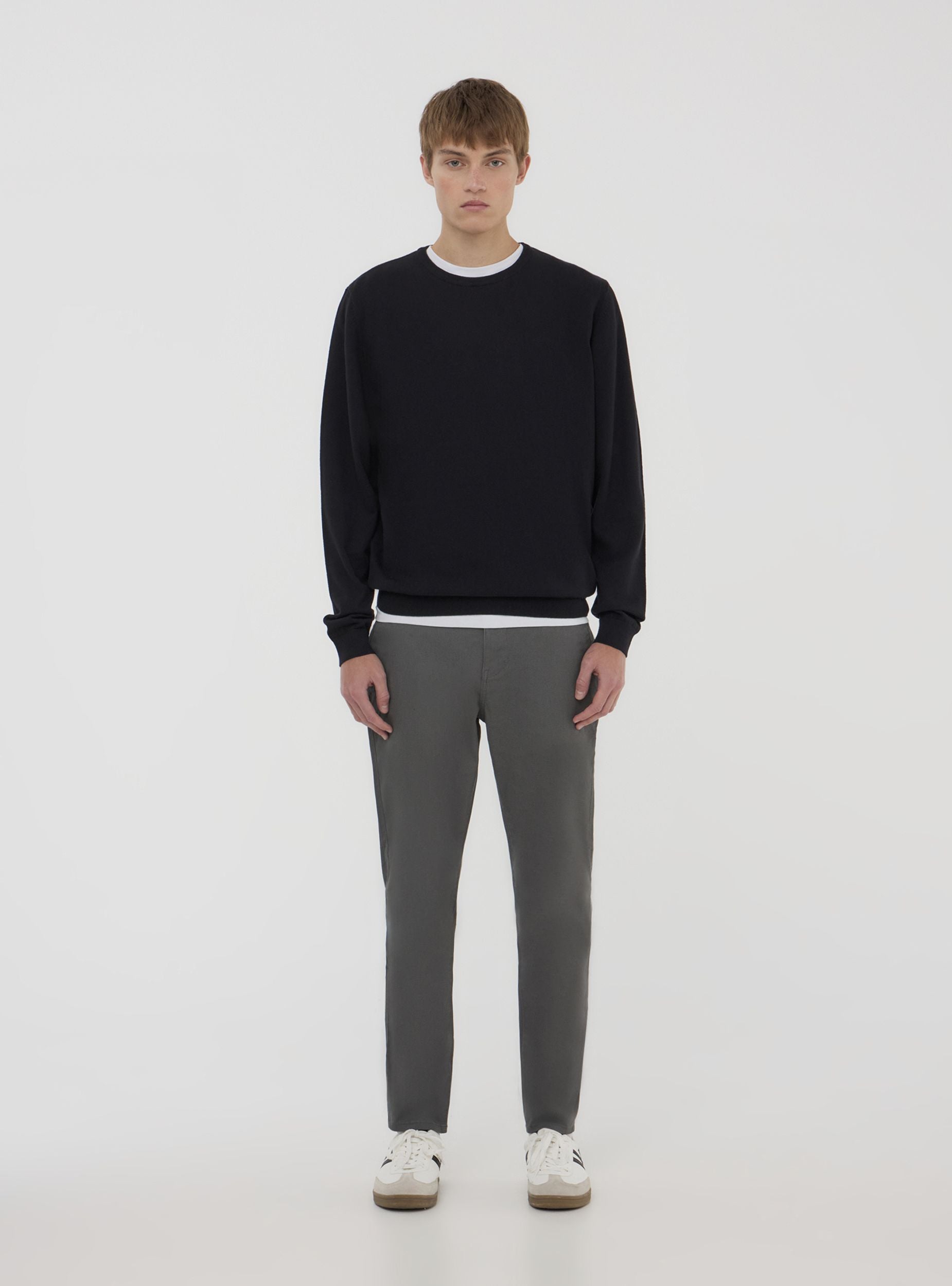 Majica za muškarce u jednobojnoj boji, idealna za jednostavno upotpunjavanje ležernog ili elegantnog izgleda. Sa dugim rukavima i okruglim izrezom, savršeno odgovara za prelazne sezone ili da se nosi ispod laganih jakni. Savršena za neformalnu radnu kombinaciju ili za izlazak s prijateljima.Detalji