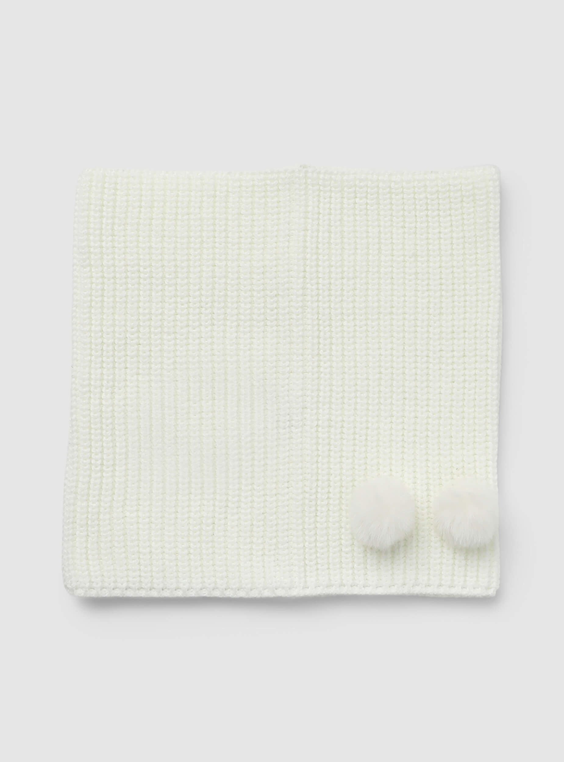 Skaldakolo za devojčice savršeno za hladne dane, idealno za upotpunjavanje zimskih kombinacija sa dodirom slatkoće. Dizajn od glatkog pletenja pruža udobnost i toplinu, dok dva aplikovana pom poma dodaju razigran i originalan detalj. Lako se kombinuje sa jaknama i kaputima, predstavlja svestran dodatak za školu i slobodno vreme. Dizajn u jednoj boji.