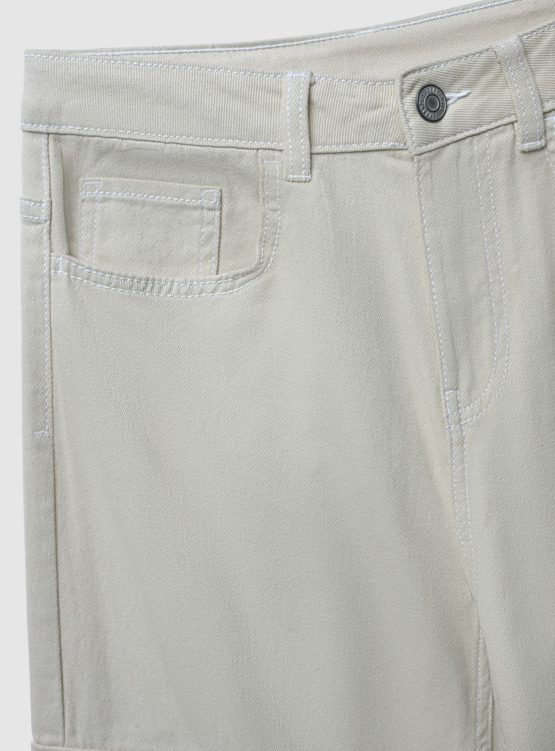 Dečije pantalone sa cargo dizajnom i širokim krojem. Imaju bočne džepove sa preklopom i zadnje džepove, idealne za ležeran i praktičan izgled. Savršene za slobodno vreme i svakodnevne aktivnosti, lako se kombinuju sa majicama i duksevima za udoban i svestran outfit.